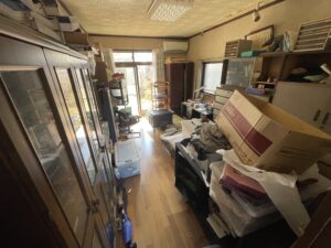 室内はゴミが多く、湿気の影響でカビや強い臭いも発生していました。畳には傷みが見られましたが、今後不動産業者様によるリフォームが予定されているため、今回は撤去作業のみで対応しています。スタッフ1名で2日間かけて丁寧に作業を進め、鍵をお預かりしてスムーズに完了いたしました。